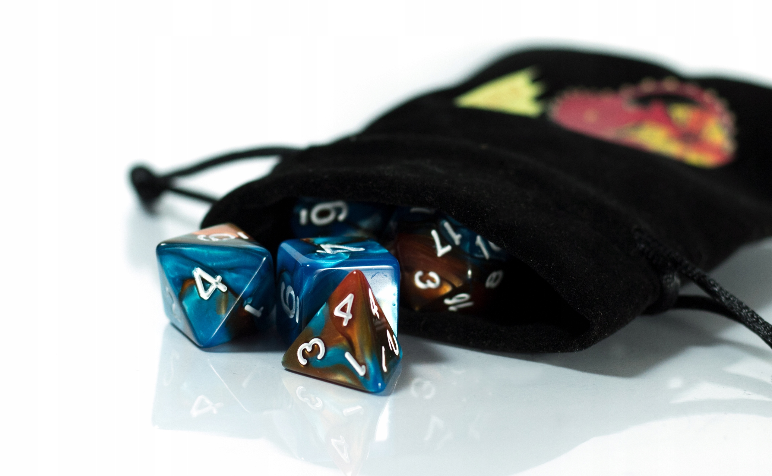 Набор игральных костей, то есть семь высококачественных игральных костей. Благодаря соответствующему балансу ими очень удобно пользоваться.