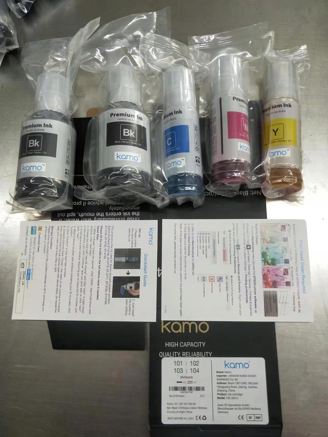 - Удобство печати: используются чернила Advanced Kamo, быстро сохнут, не имеют специфического запаха, предотвращают засорение. Чернила Kamo 102 103 104 безопасны для использования в совместимых домашних и офисных принтерах.
