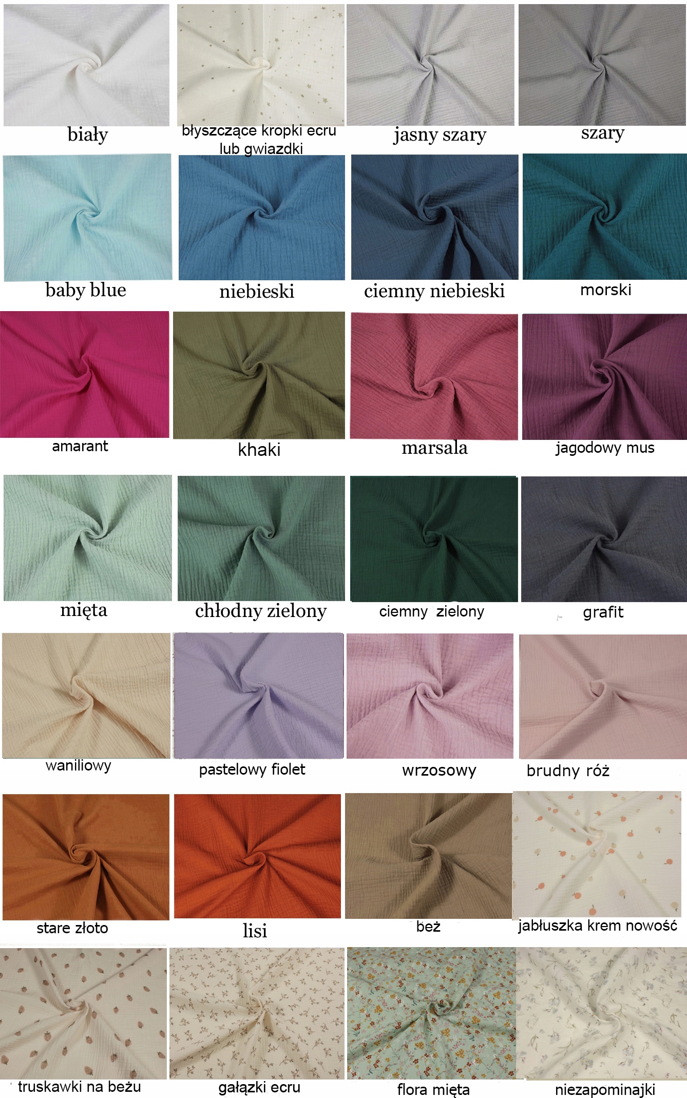 Выберите цвета доступного муслина GOTS: