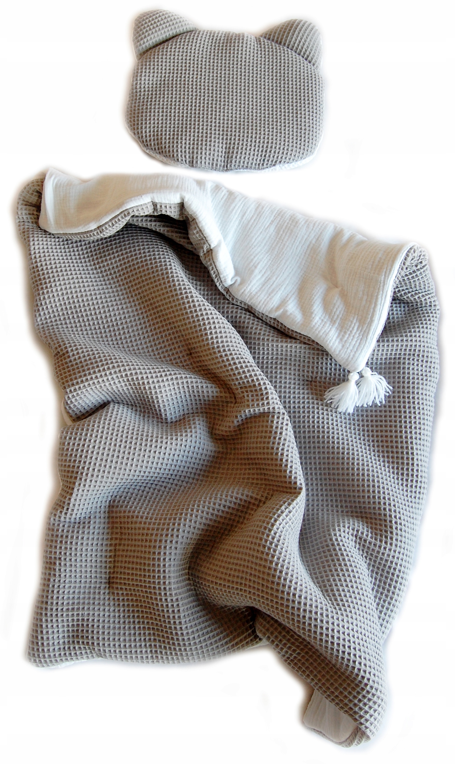 - подушка (размеры без ушек) 35 х 27см (+/- 2 см) Подушка плоская, толщиной примерно 3 см (но при желании можем наполните его силиконовым шариком, более толстым, чем традиционная подушка).