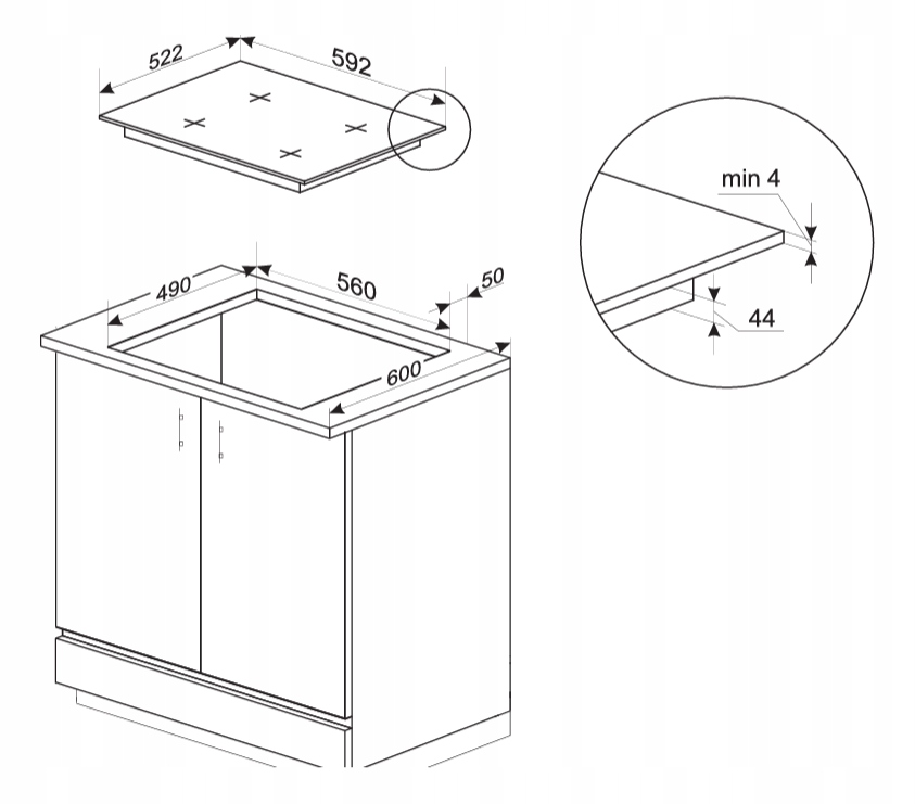 Варочная панель сконструирована таким образом, что ее можно разместить на столешнице, не оставляя зазоров и углублений, в которых будет скапливаться грязь.