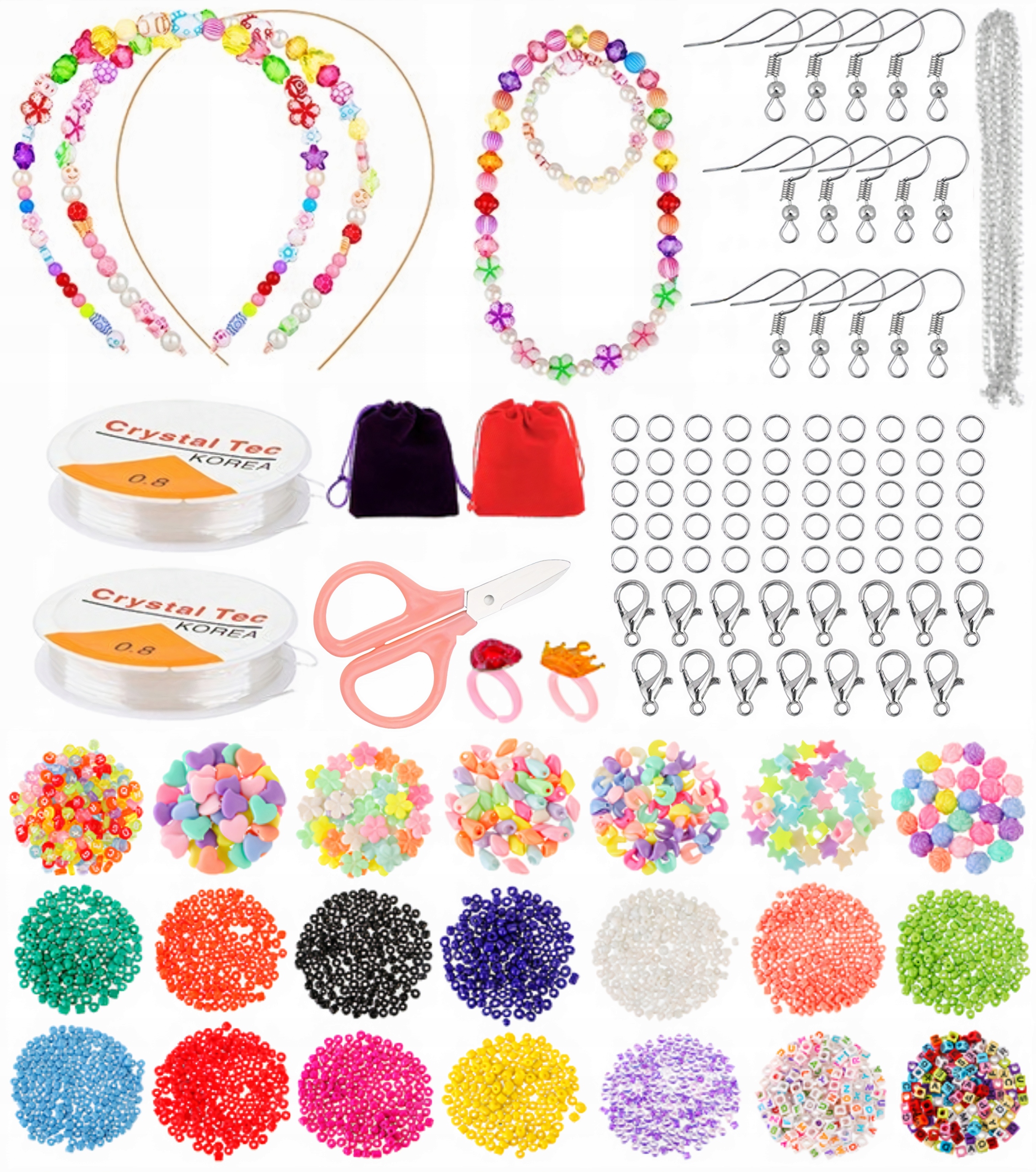⭐Помимо большого количества разноцветных бусин, он содержит множество дополнительных инструментов и аксессуаров b> для создания украшений.
