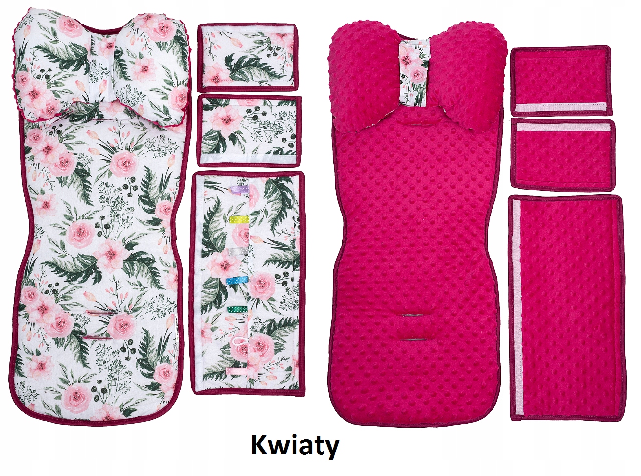 Вставка имеет 6 отверстий для ремней безопасности, отверстия для крепления подушки-бабочки и два отверстия для 5-точечных ремней безопасности. Вставки универсальны и протестированы на многих колясках, доступных на рынке.