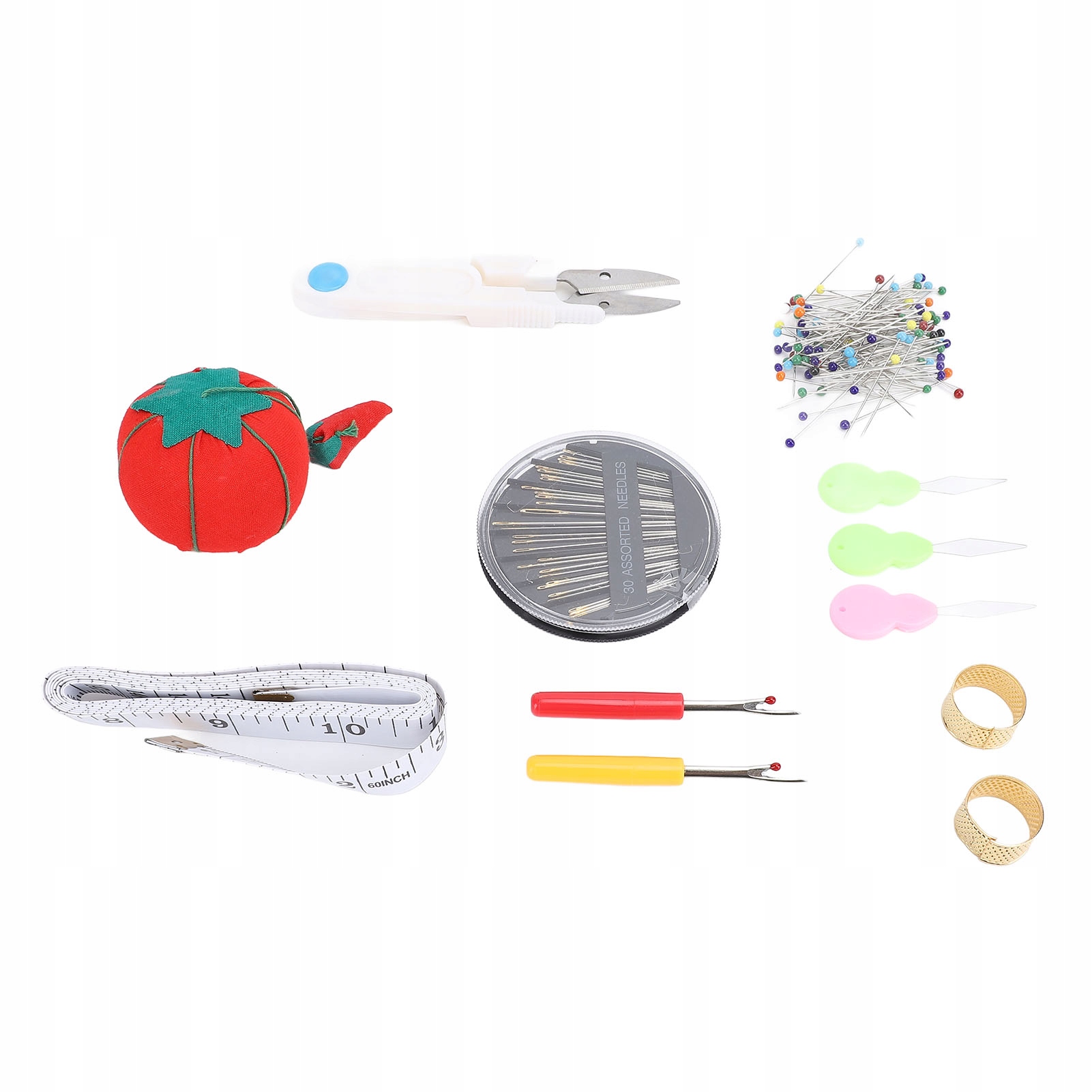 1. [Набор швейных инструментов] В набор швейных инструментов входят основные швейные инструменты, которые помогут вам измерить размеры, заправить иголки, шить, собирать булавки и иглы.