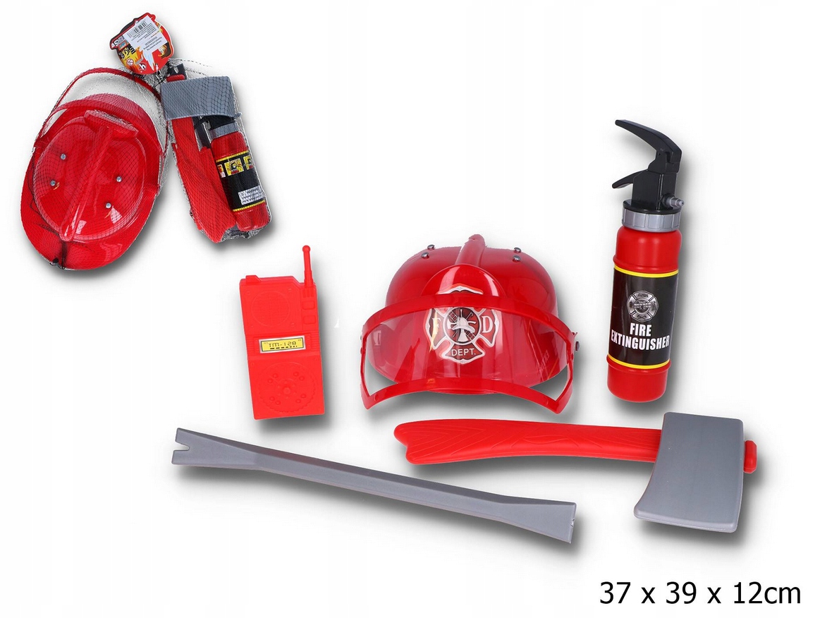 НАБОР ПОЖАРНЫЙ ШЛЕМ ОГНЕТУШИТЕЛЬ МАЛЕНЬКИЙ ПОЖАРНЫЙ ЧЕЛОВЕК 6 ПРЕДМЕТОВ
