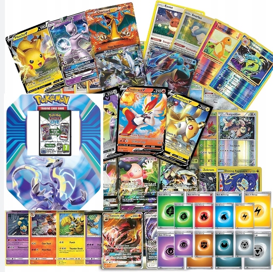 ККИ «Покемон» — набор из 100 карточек + 10 голографических карточек + 10 трейнеров + банка Kolekcjonerska