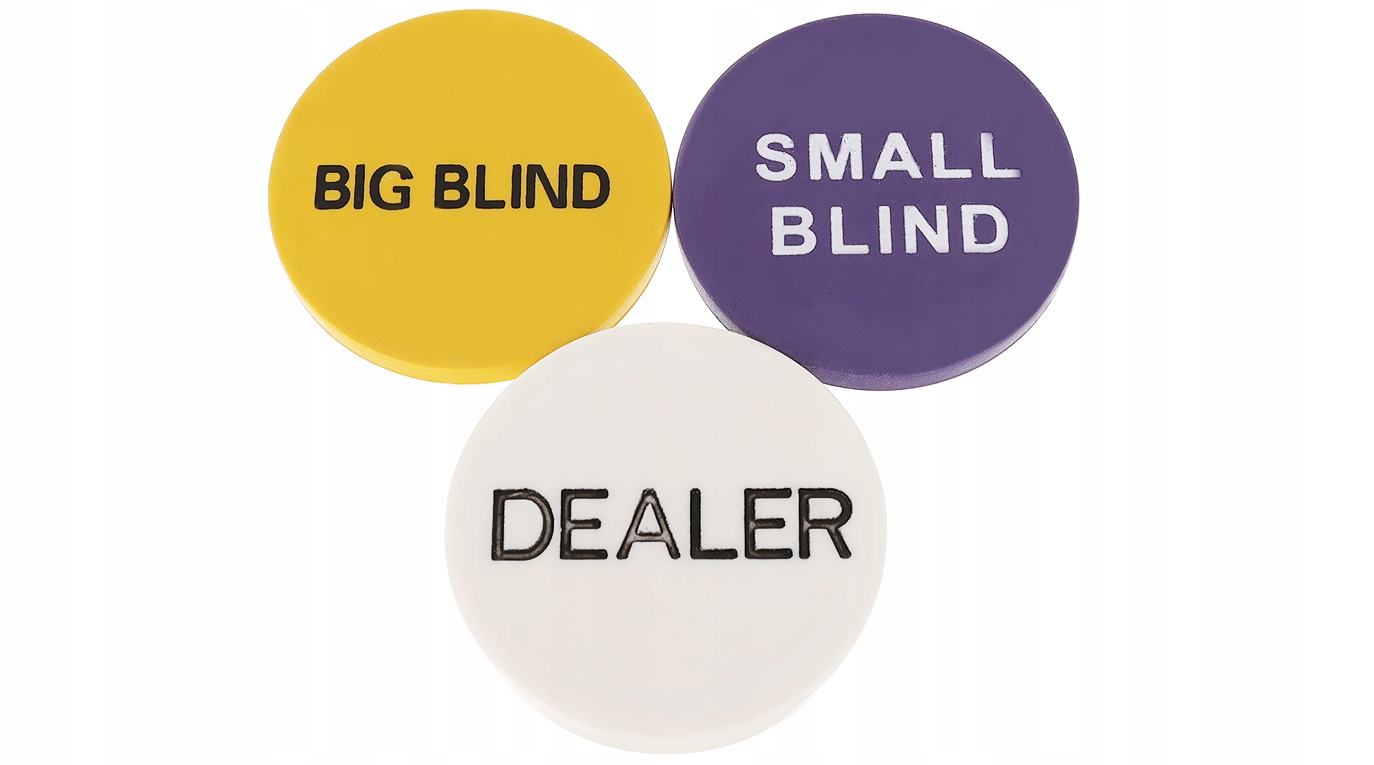 - ЖЕТОНЫ ФУНКЦИОНАЛЬНЫЕ – в набор входит набор из 3-х функциональных жетонов, которые позволяют поддерживать порядок и порядок в игре. ДИЛЕР — это жетон дилера, который во время игры перемещается по часовой стрелке. МАЛАЯ БИНД отмечает первого игрока, сидящего с дилером. БОЛЬШОЙ БЛИНД означает второго игрока, сидящего за дилером.