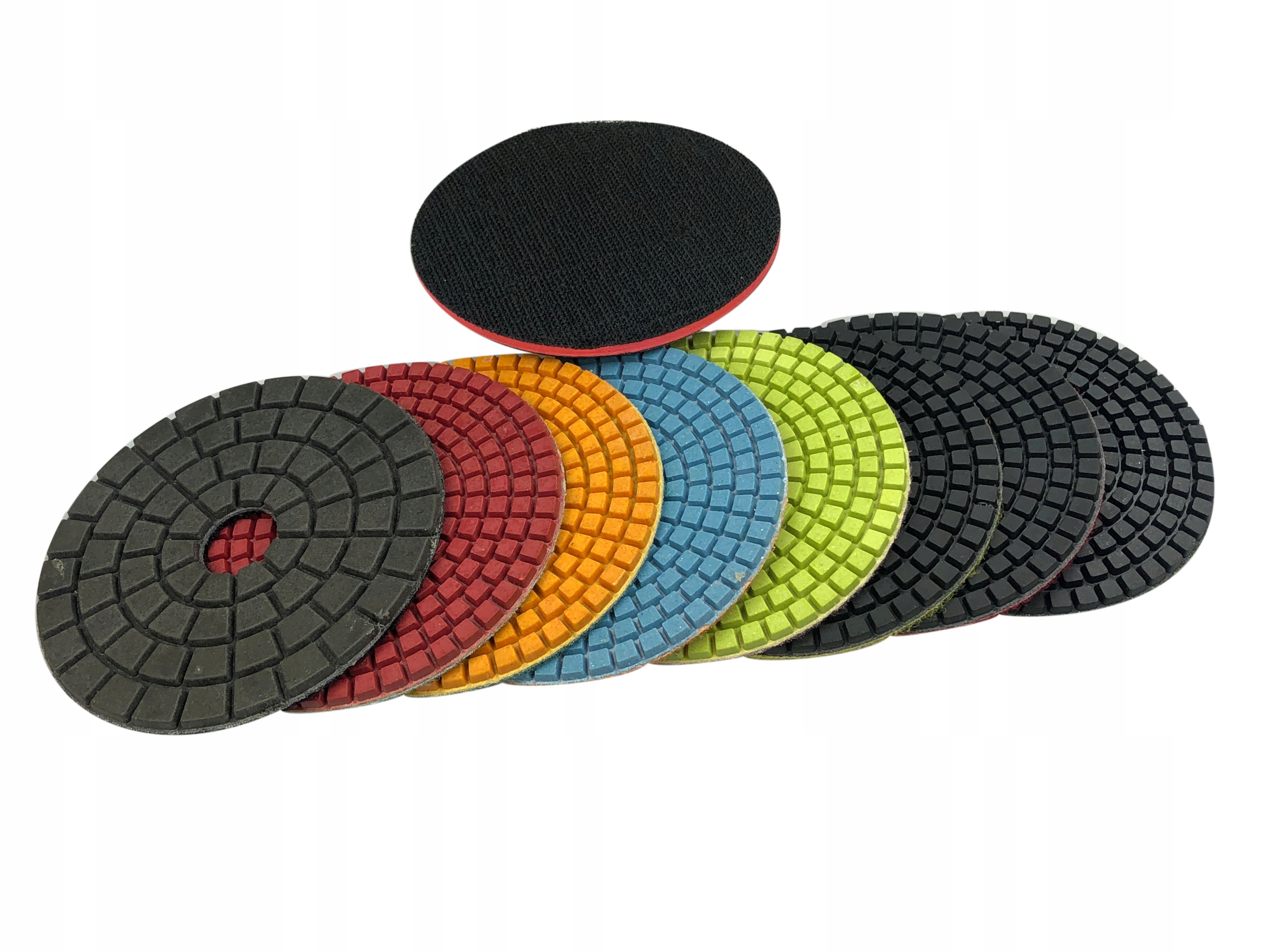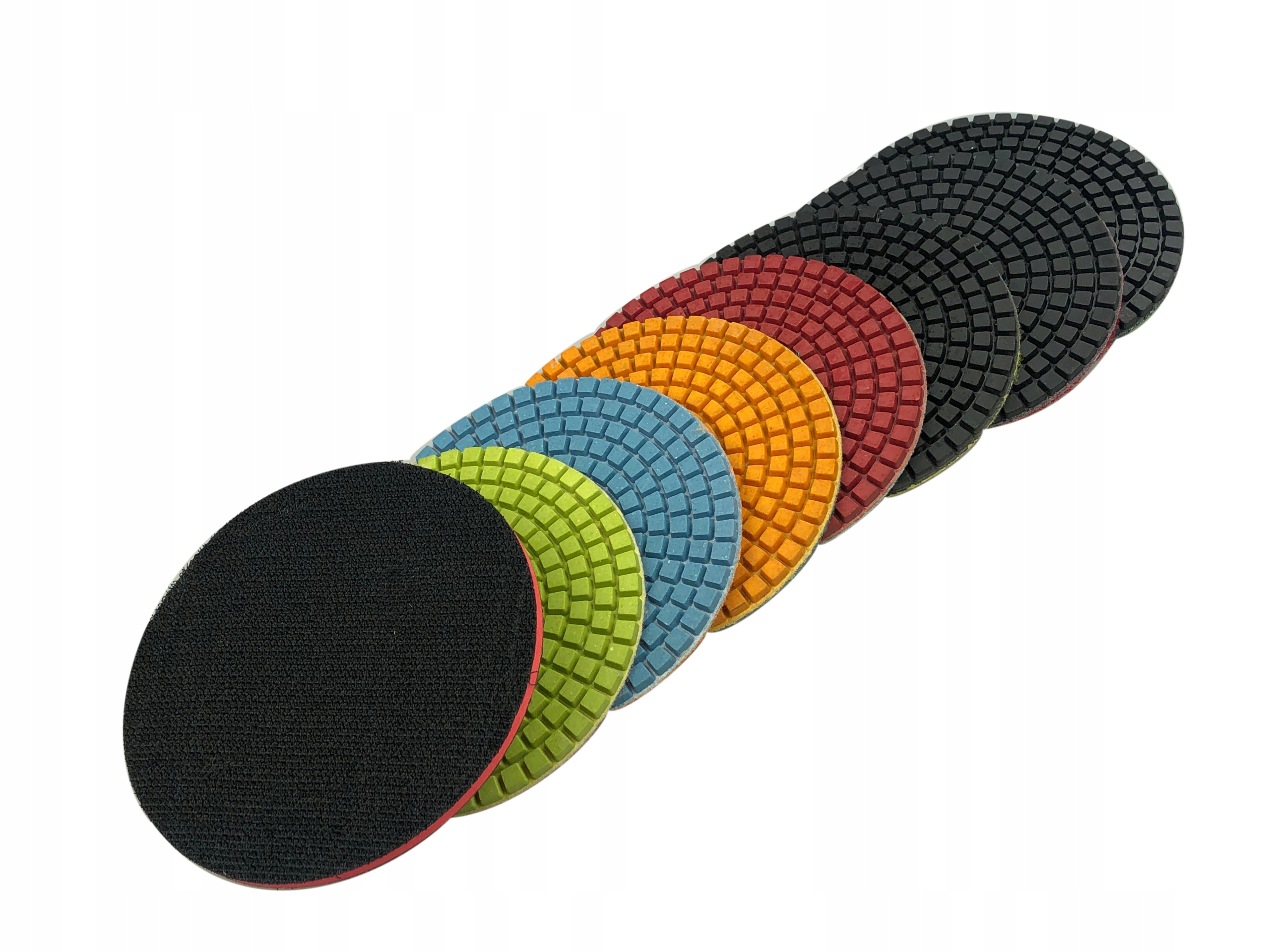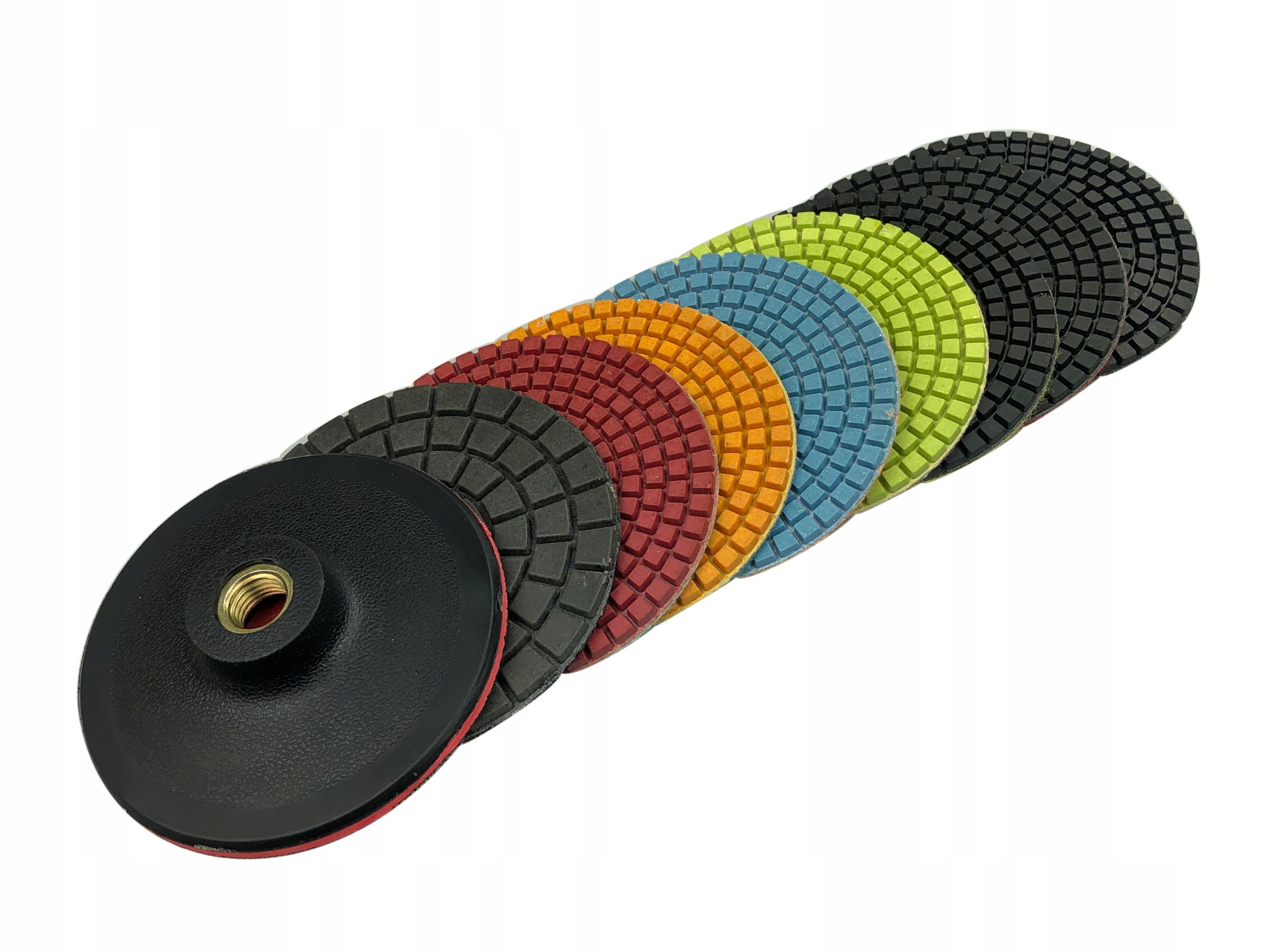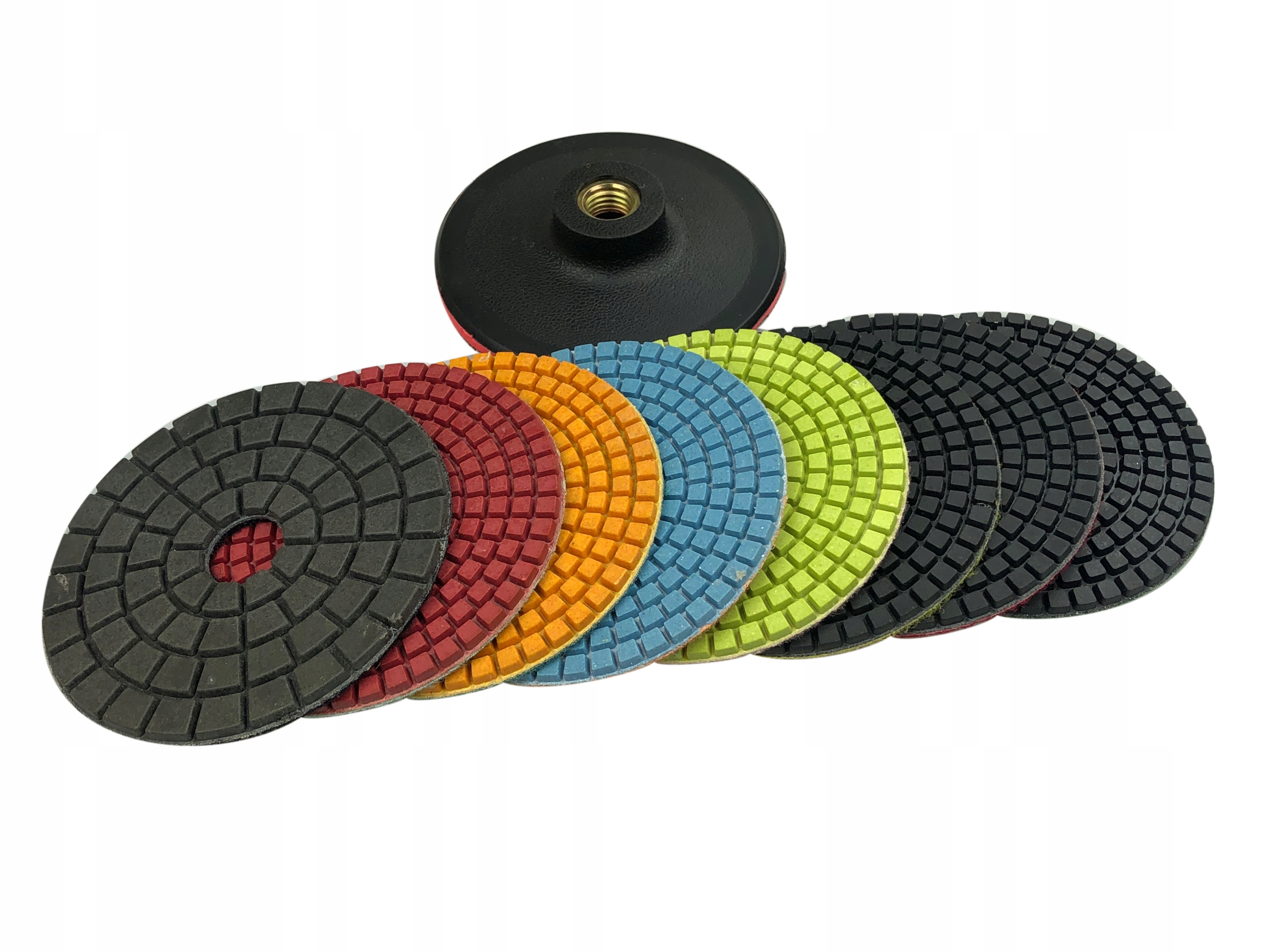 НАБОР ИЗ 8 АЛМАЗНЫХ ПОЛИРОВАЛЬНЫХ ДИСКОВ FI 100 ММ ДЛЯ ВЛАЖНОЙ ПОЛИРОВКИ КАМНЯ, ГРАНИТА, ПОГРИНА + ТОНКАЯ ПЛАСТИКОВАЯ РУЧКА FI 100 ММ M14