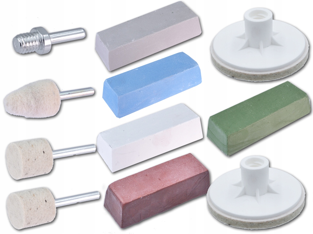 Пасты, входящие в набор, предназначены для окончательной полировки, за исключением серой пасты, которая используется для первичной полировки.