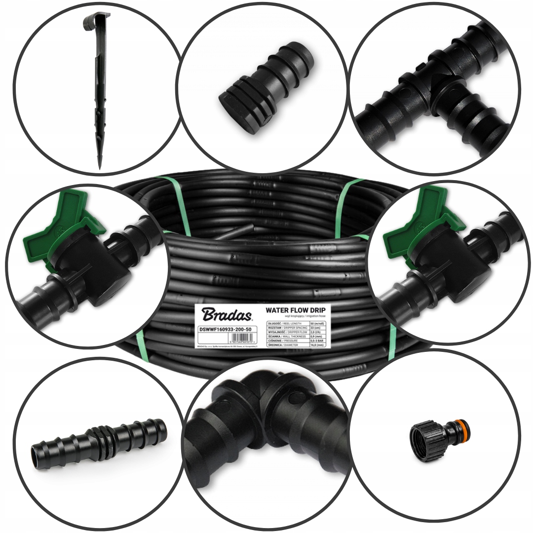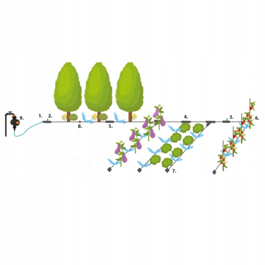 Монтажный комплект: Облегчает установку капельного шланга, обеспечивая стабильное и надежное крепление к садовому участку.