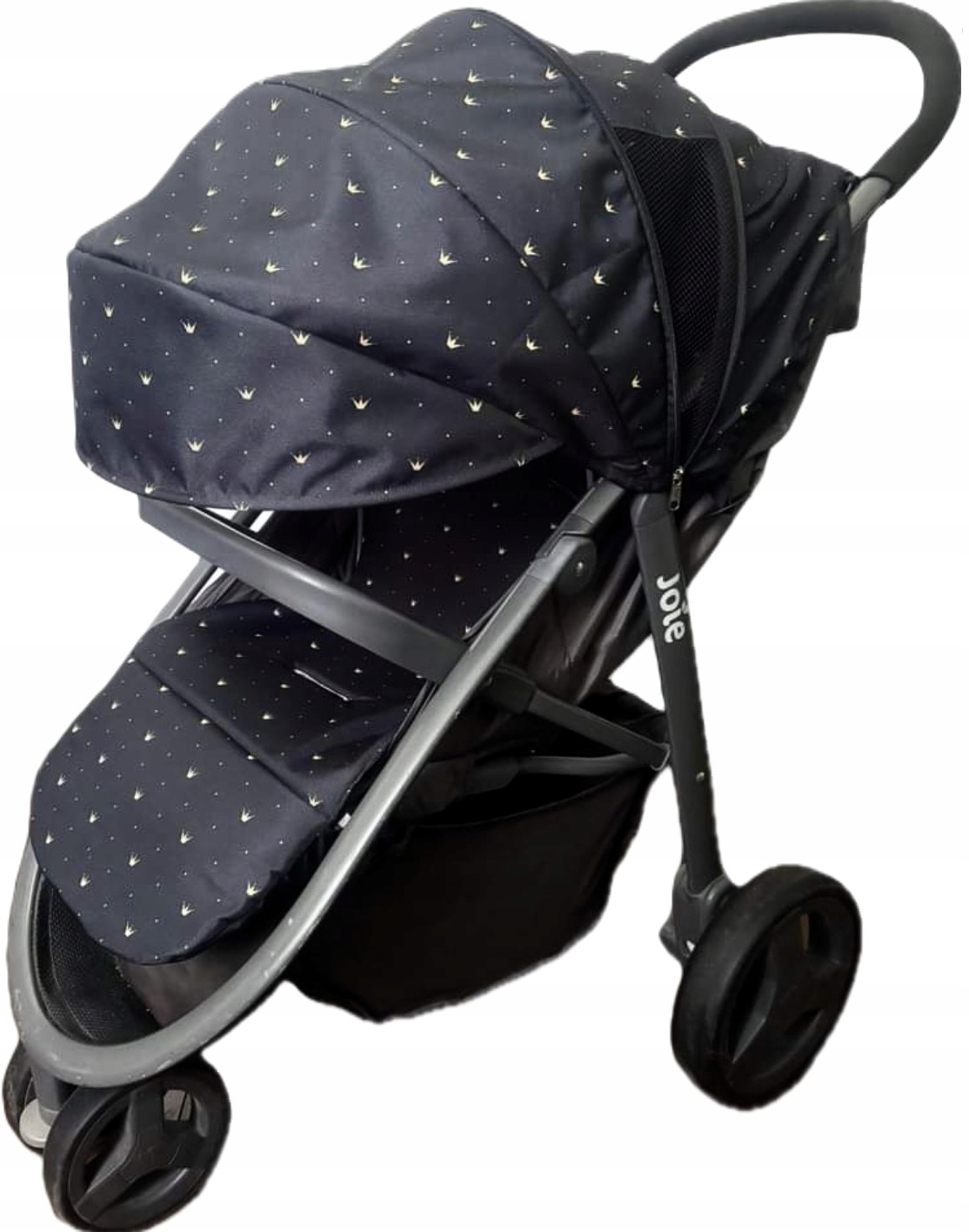 Капюшон коляски Joie Mytrax + вставка сиденья + защита ремня и оголовья С УЗОРОМ ЗОЛОТЫХ КОРОН НА ЧЕРНОМ ФОНЕ