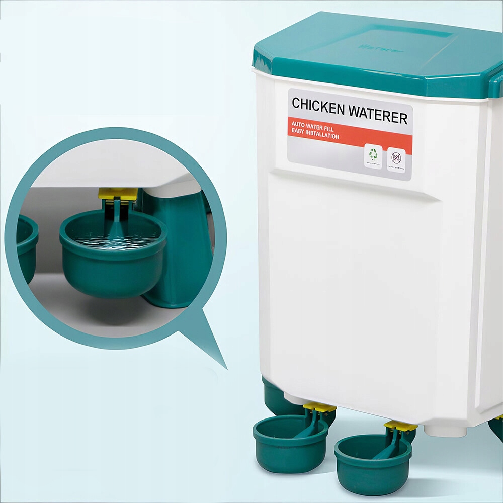 Безотходная поилка для цыплят:Инновационный дизайн сокращает количество отходов и очищает источники воды. Поилка с клапаном обеспечивает доступ к свежей и чистой воде.