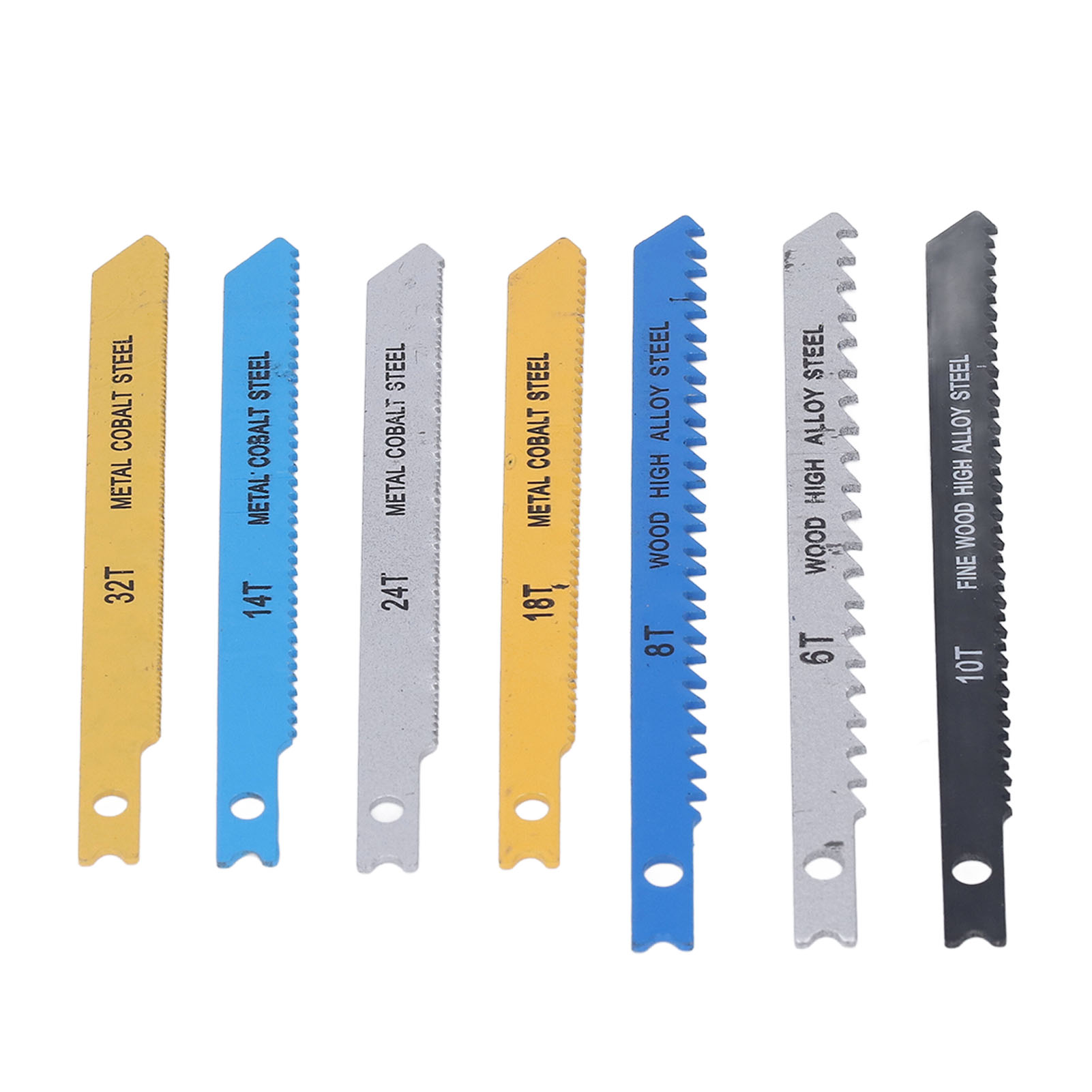 1. Набор из 70 шт.: В комплект входят 7 видов пильных полотен, соответственно 6TPI, 8TPI, 10TPI, 14TPI, 18TPI, 24TPI, 32TPI, по 10 шт. каждого для использования, достаточное количество для длительного использования.