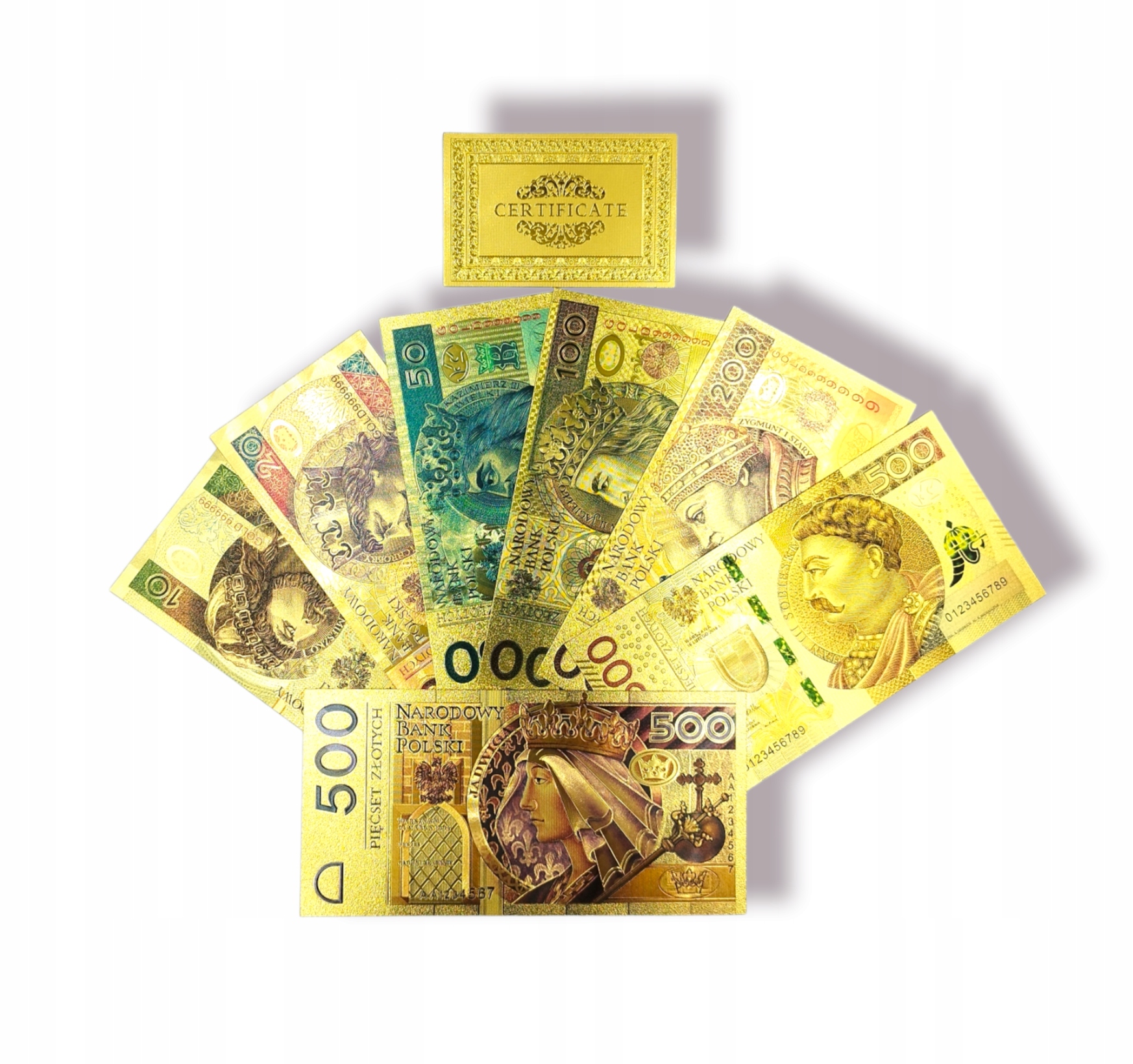 НАБІР польських позолочених банкнот СЕРТИФІКАТ