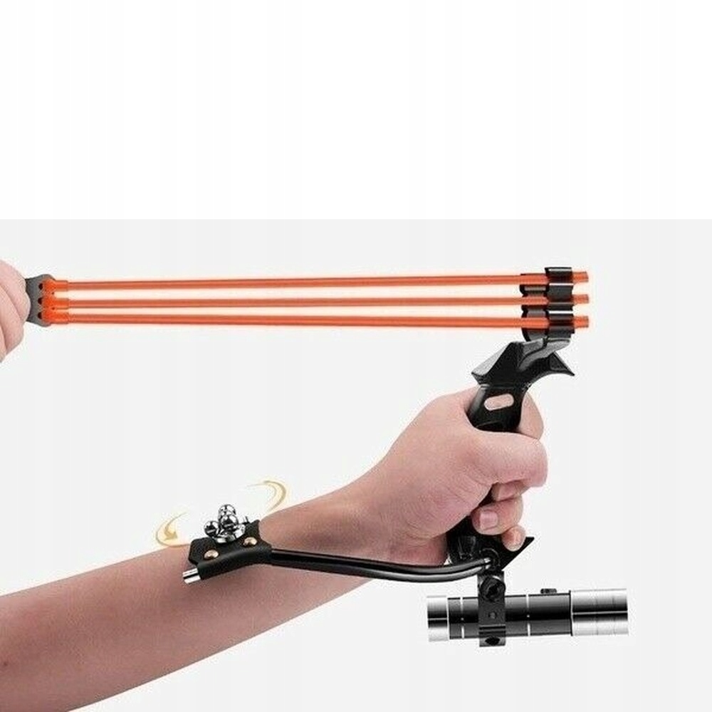 2. [Точная стрельба]: регулируемая подставка для запястий и рогатка золотой пропорции, складная рогатка, проста в использовании и удобна в переноске, с держателем лазерного фонарика позволяет точно охотиться даже ночью;