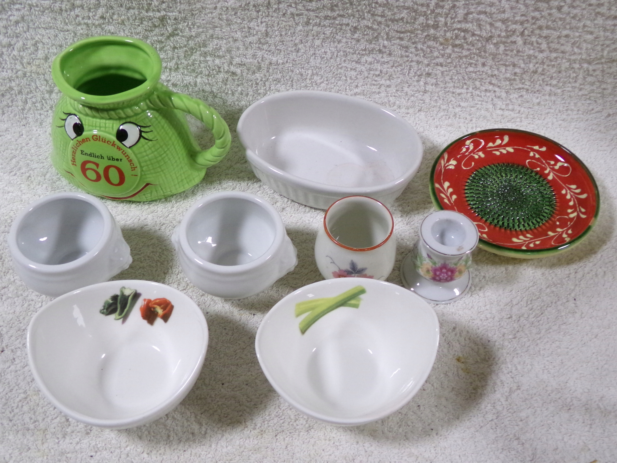 Набор фарфоровых и керамических изделий диаметром от 4,5 до 14 см, высотой от 2,5 до 11 см, весом 1,20 кг. Состояние очень хорошее, без повреждений.