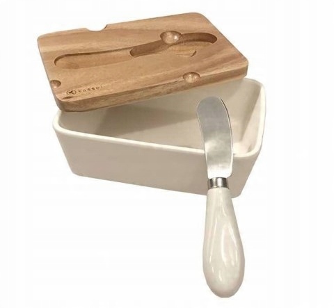 ⭐ Фарфоровая масленка KASSEL белого цвета с крышкой из дерева акации. В комплект входит фигурный нож для жира с фарфоровой ручкой. Крышка из дерева акации продлевает свежесть масла.