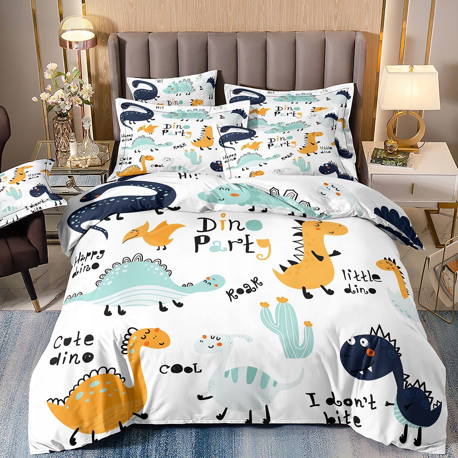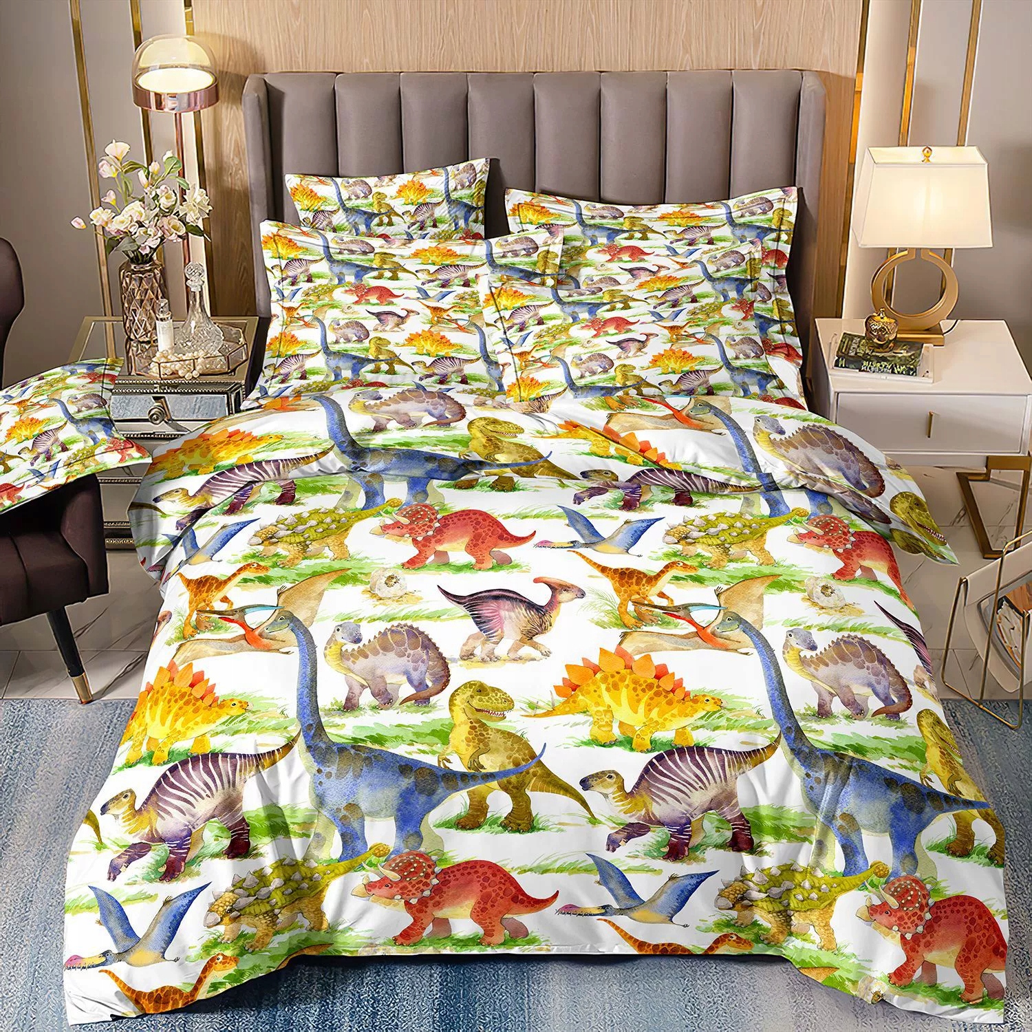 Вы все еще ищете уникальный и удобный набор постельных принадлежностей для вашего ребенка? Этот трехпартийный набор постельных принадлежностей для детей с мотивом динозавра определенно является идеальным выбором!