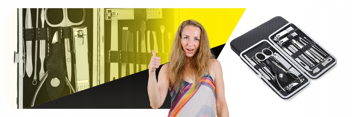 - В наборе 19 средств по уходу различного назначения, например, стрижки ногтей, отодвигания кутикулы и многих других.
