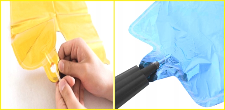 ⭐Наполненный воздухом шар нужно просто взять за завязанный конец и протянуть через отверстие в ленте для гирлянды.