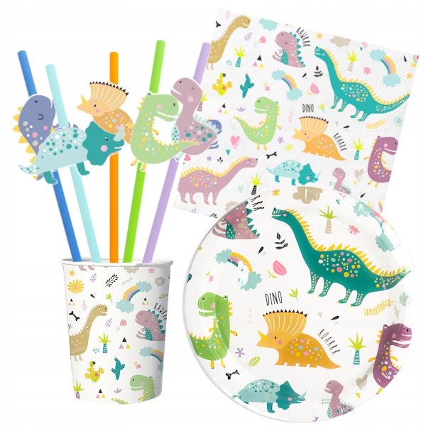 - 6 шт Соломинки с мотивом 6 динозавров - 6 шт