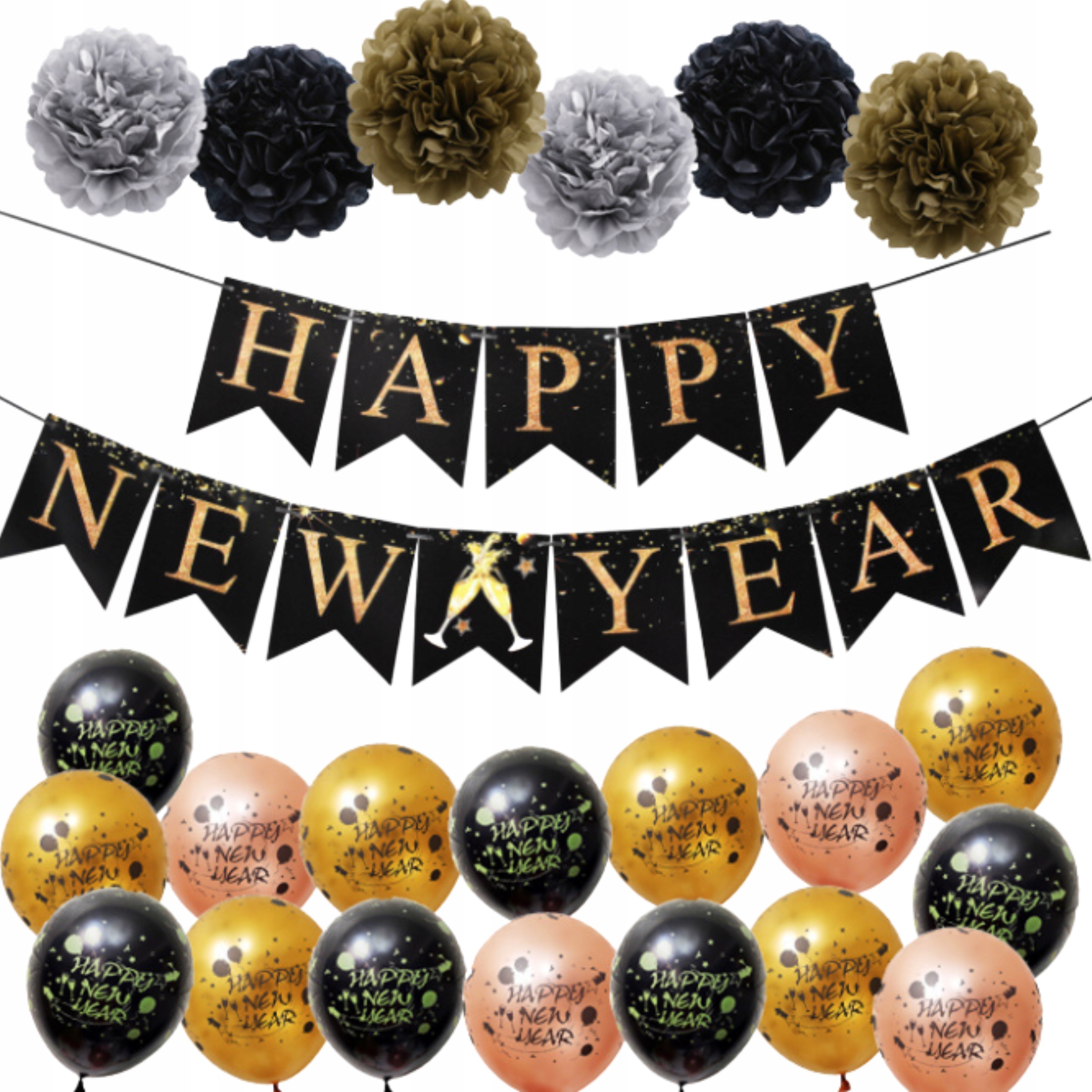 ✅ Новогодний пакет< /b > - состоит из черных, розовых и золотых латексных шаров.