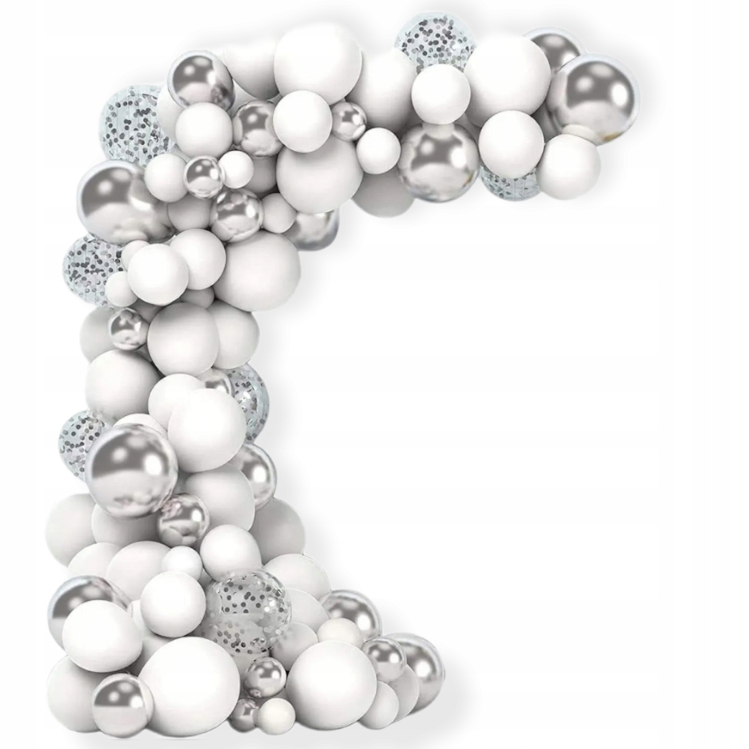 НАБІР ПОВІТРЯНИХ КУЛЬОК GIRLAND Срібний і білий ХРОМ 1 рік