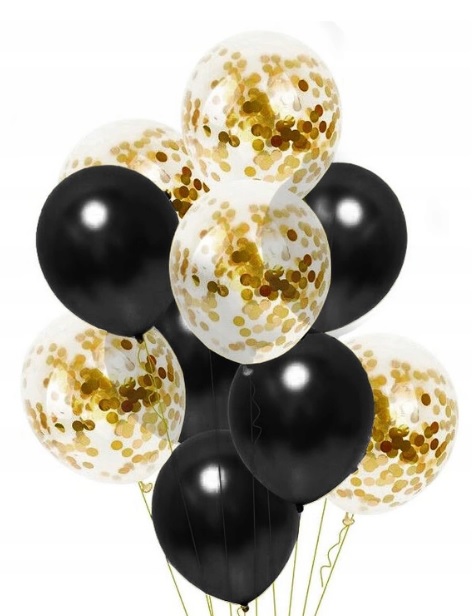 - Шарики прозрачные с принтом на 40и конфеттизолотого цвета , диаметр 30 см, 5 штук