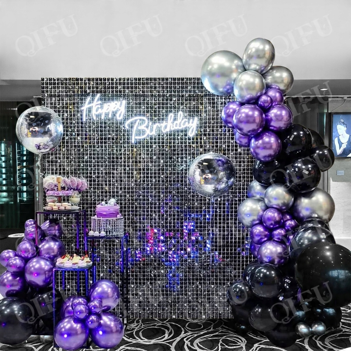Chrome Balloon Set, Серебряная фиолетовая стена на день рождения 18 21 30 40