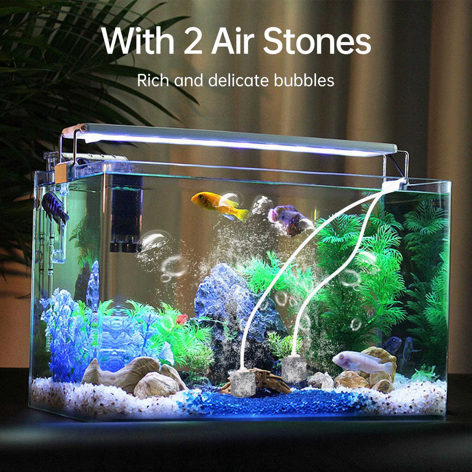 - 【С 2 пузырьками воздуха с камнями】 С 2 пузырьками воздуха с камнями солнечный воздушный насос может быстро повысить уровень кислорода в пруду с рыбой, поддерживать пруд в чистоте и поддерживать рыбу более активной.