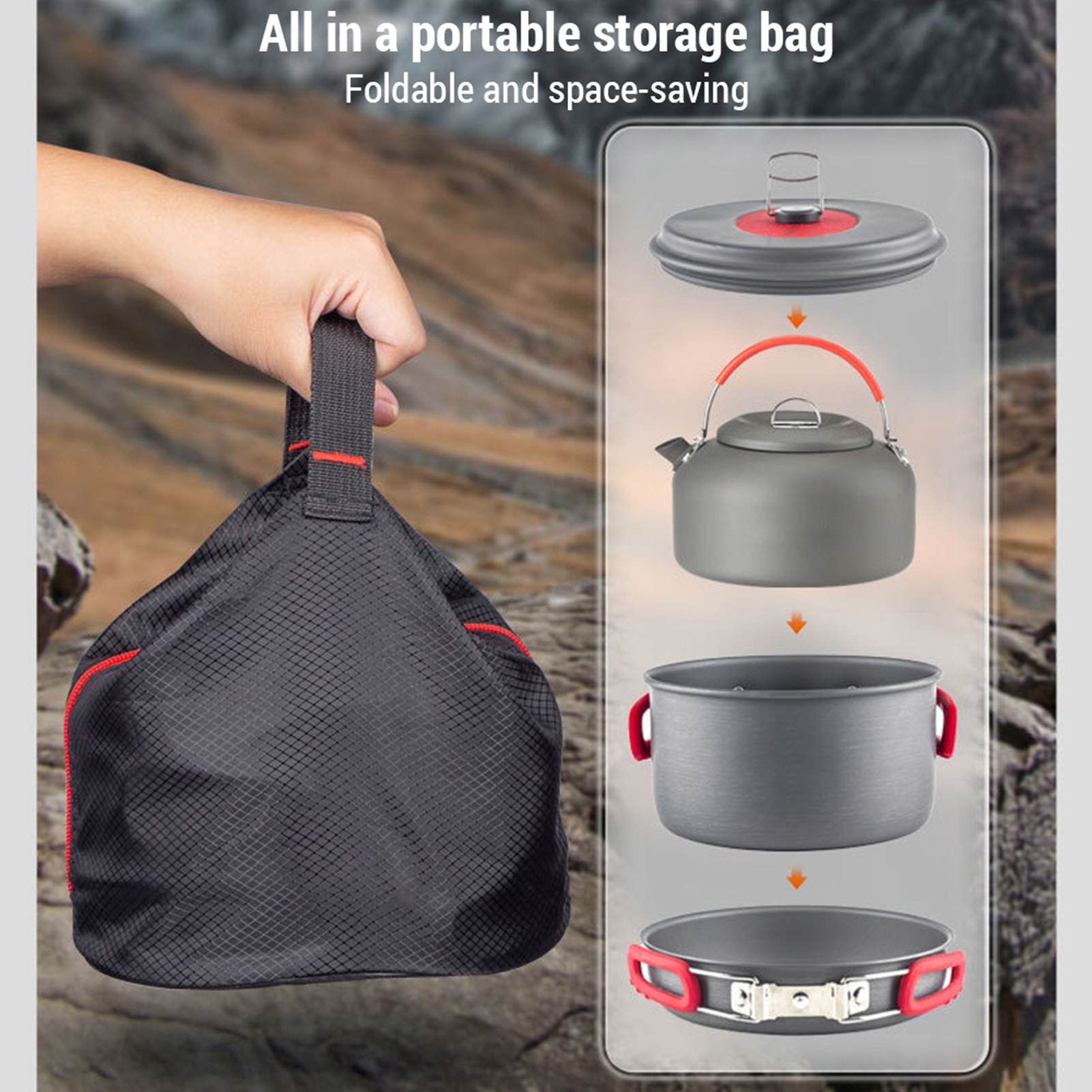 - Походные наборы изготовлены из алюминиевого сплава, который является безопасным, теплопередающим и устойчивым к царапинам.