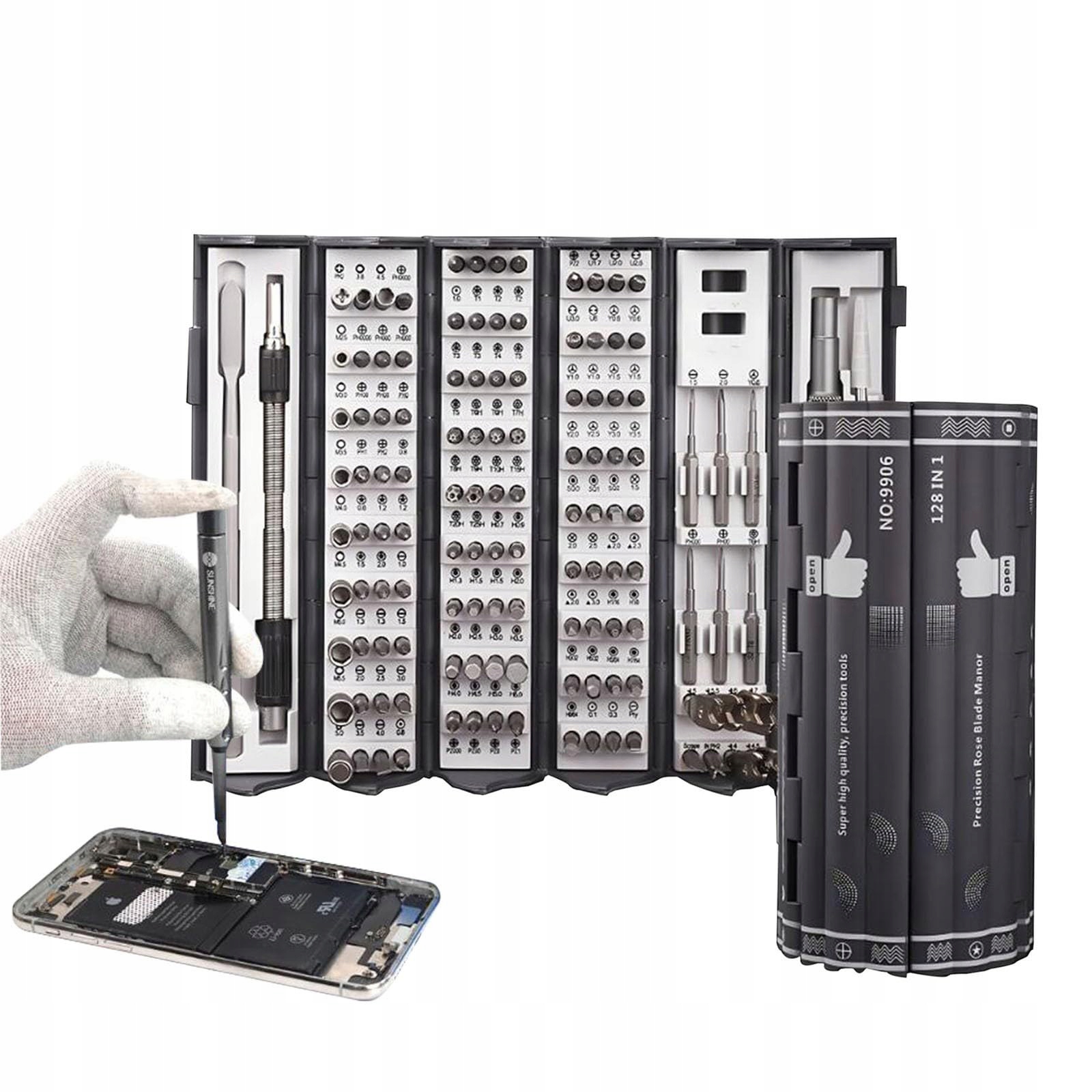 【Универсальность】Набор прецизионных инструментов 128 в 1 включает 122 высококачественные насадки и 6 основных инструментов, в том числе рукоятку отвертки, удлинитель, намагничиватель, размагничиватель, прецизионные пинцеты и двусторонний рычаг. Будь то ноутбук, смартфон, фотоаппарат или очки, этот набор идеально подходит для профессионалов и любителей DIY.