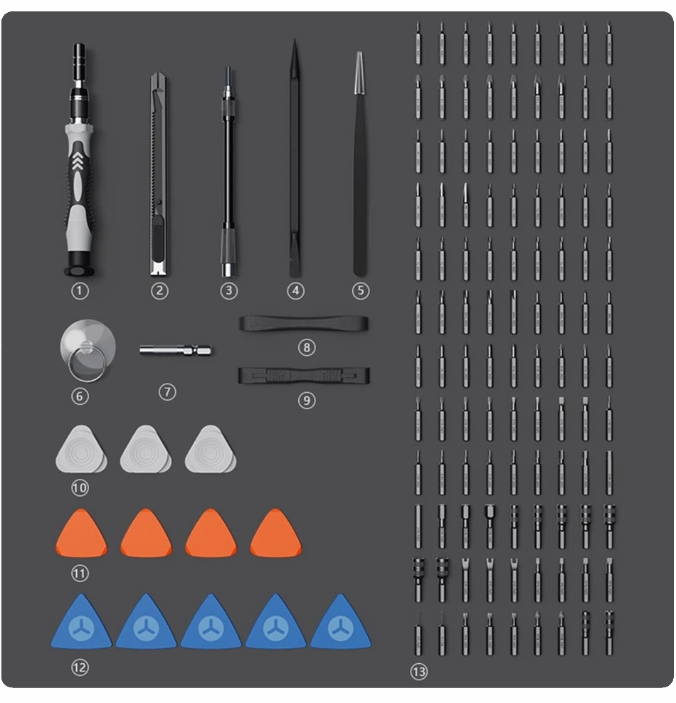 - С помощью этого полного набора вы сможете эффективно разбирать и обслуживать различные устройства независимо от их назначения.