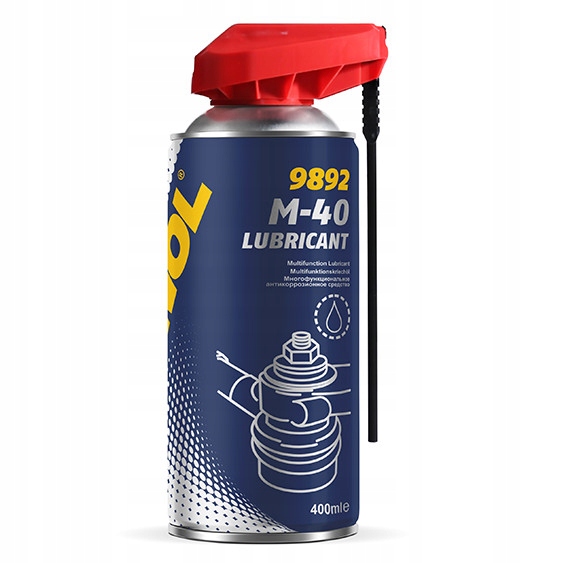 Смазка MANNOL M-40 смазывает, очищает, растворяет и защищает от ржавчины. Смесь высокоэффективных веществ и масел не только разрыхляет всевозможные ржавые элементы в самых узких щелях, но и гарантирует плавное движение движущихся частей. Способность отводить и диспергировать воду, а также антикоррозионные свойства обеспечивают защиту от коррозии и окисления. Очищает присохшую грязь, остатки масла и жира. Безвреден для краски, резины и пластика.