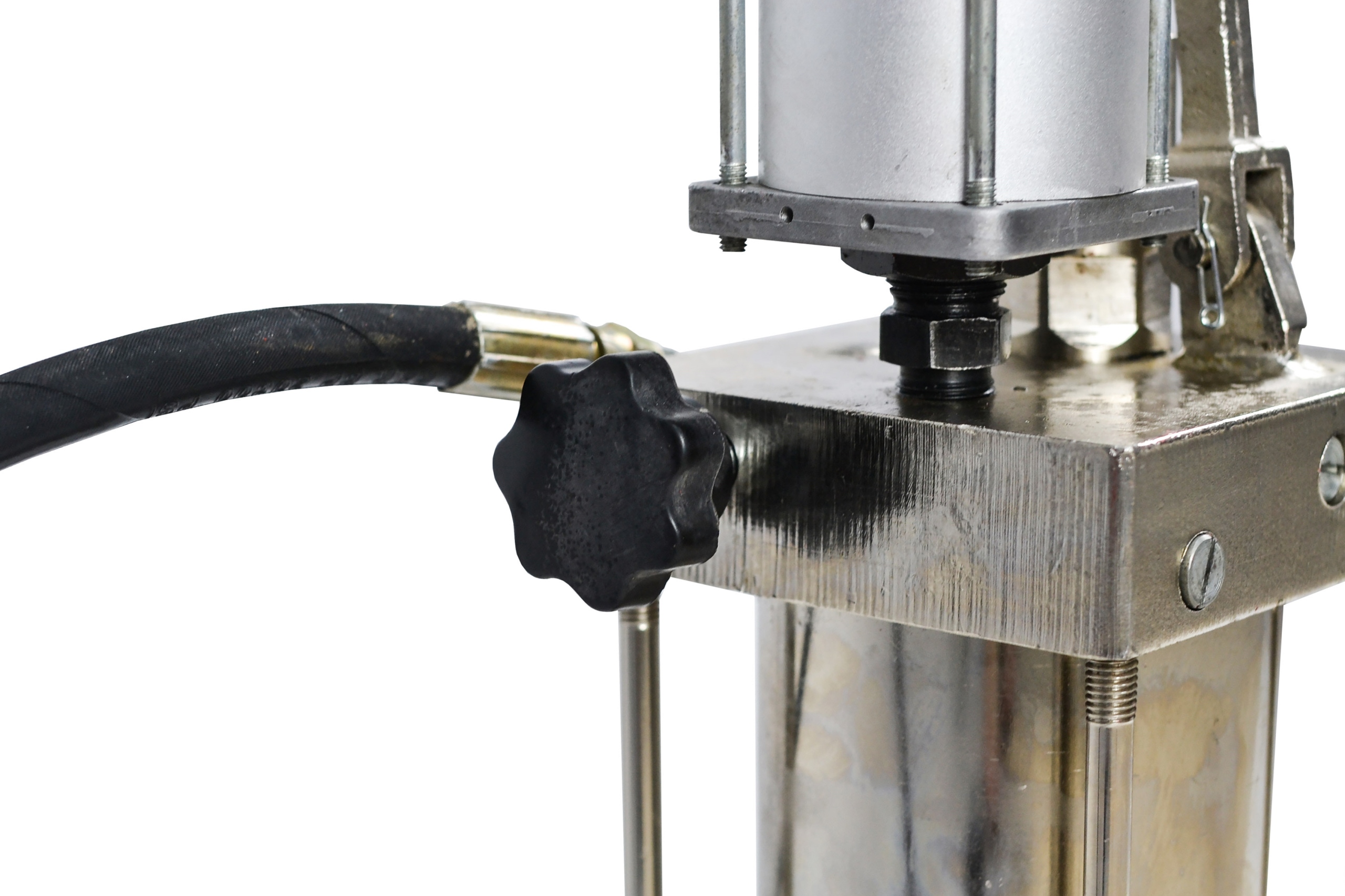 Накачивание производится вручную или путем подключения компрессора с давлением около 7 бар, благодаря чему можно добиться эффекта давления 30Т, все показывает давление манометр