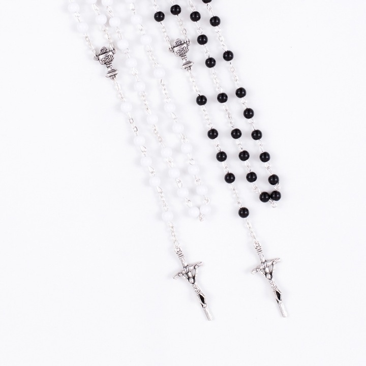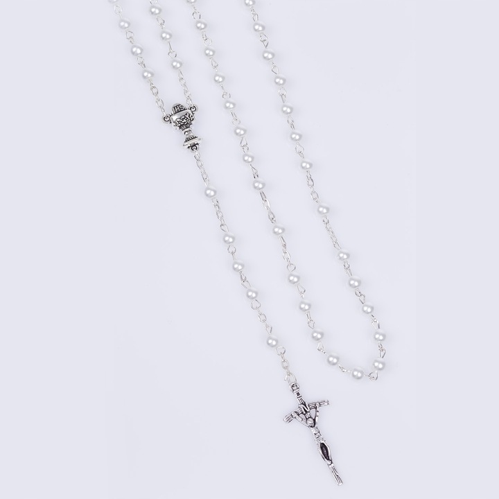 - Чётки четки для причастия, заканчивающиеся папским крестом (2 дизайна на выбор: белые шары, жемчужные шары)