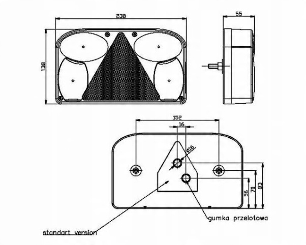 - 2 фонаря задние, совмещенные с подсветкой номерного знака и светоотражающими треугольниками