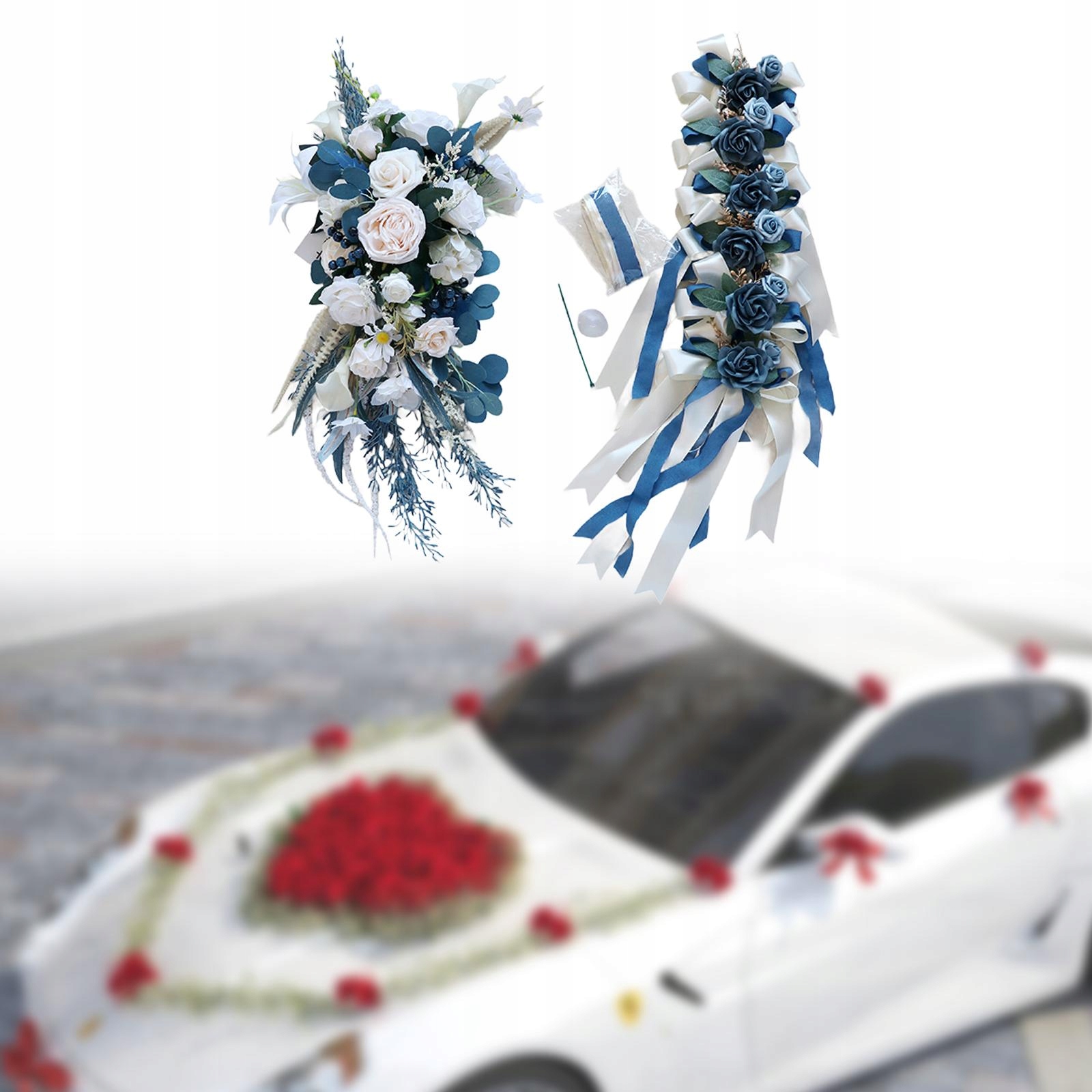 Набор украшений свадебных автомобилей и луков симуляция цветов Blue Wedding Car