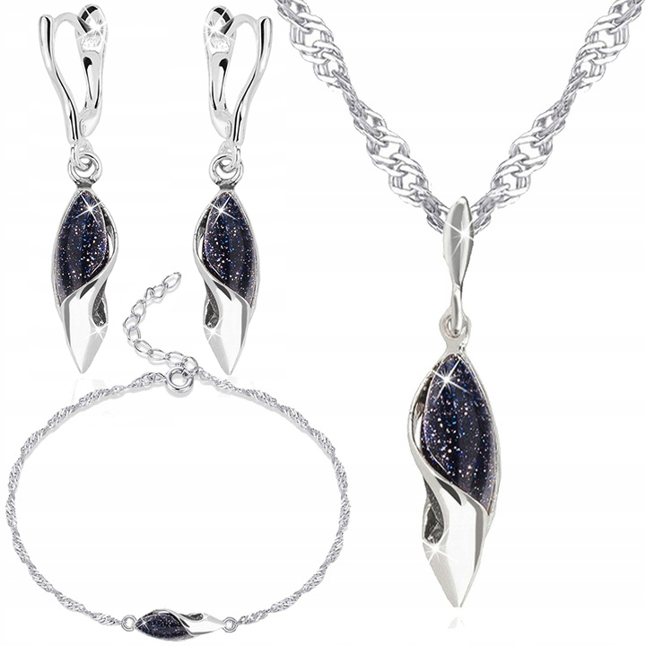 Уникальный комплект украшений из высококачественного родиевого покрытия* серебра 925 пробы