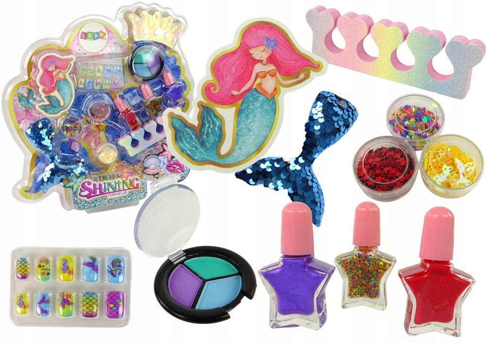 Тени для век в оттенках зеленого, фиолетового и синего позволит вам экспериментировать с различными макияжами глаз. 4 контейнера с декоративными блестками различных форм и цветов добавят блеск.