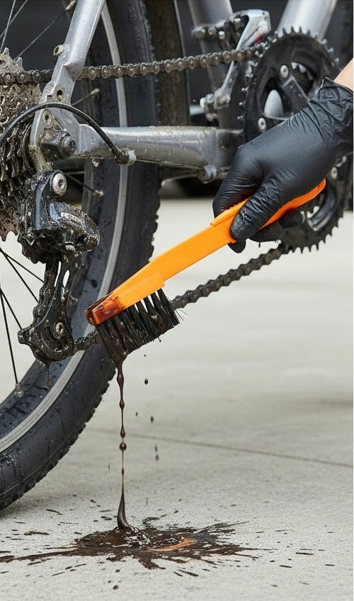 - Удаление грязи и отложений с цепи, звездочек и других компонентов привода.