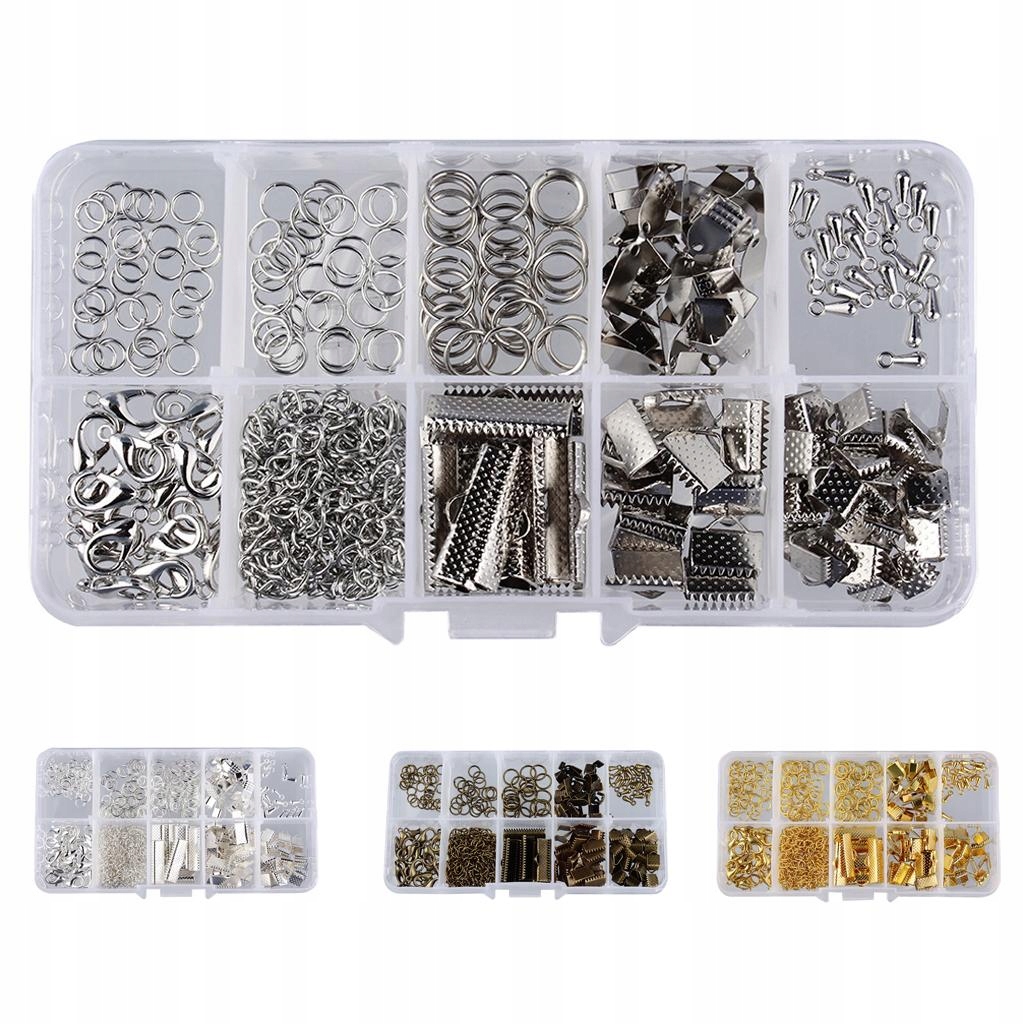 Набор для начинающих, включающий застежку-карабин, монтажные кольца, ленты, удлинительную цепочку, кончики и наконечники.