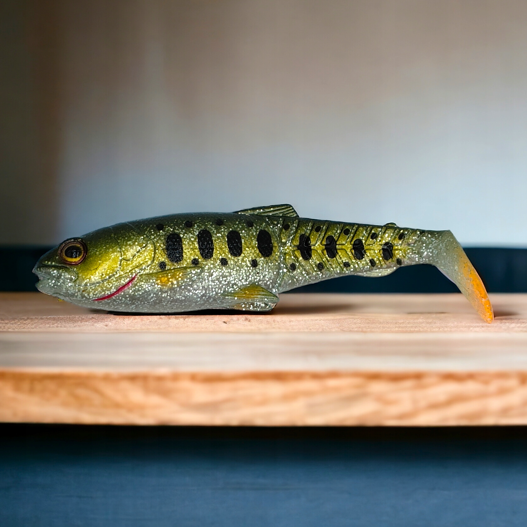 Приманка, разработанная и разработанная легендарным дизайнером Мадсом Гросселем. Профиль приманки вдохновлен молодой смолтой лосося. У него открытая пасть классического каннибала, реалистично выглядящие большие резиновые глаза и новый уникальный дизайн хвоста. Этот особый хвост позволяет резине двигаться очень реалистично даже на очень низкой скорости движения.