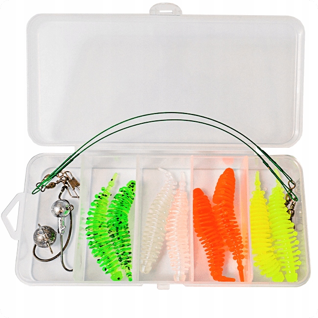 Добавление джиг-головки, чебурашки, смещенного крючка и поводков делает набор полным и готовым к использованию . Поводки длиной 20 см позволяют защитить комплект от нападения более крупного хищника.