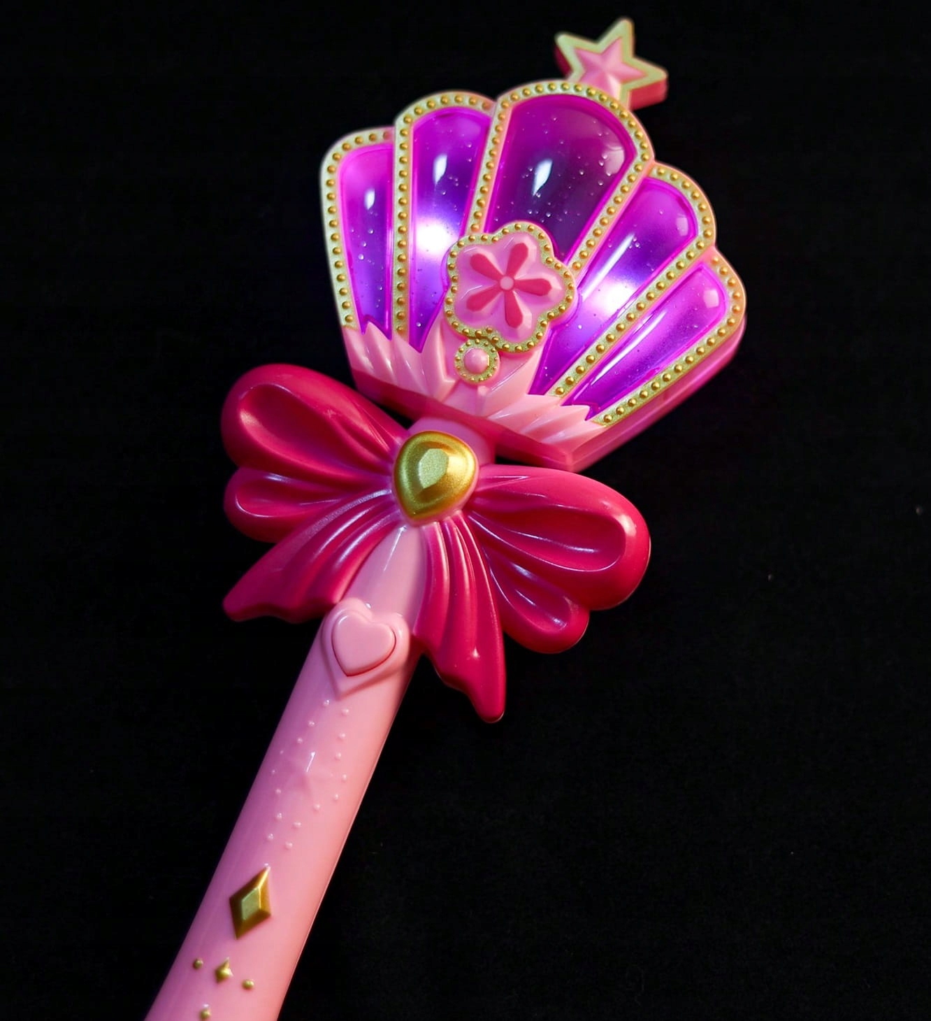 В набор входят - светящаяся палочка со звуком, тиара и ожерелье