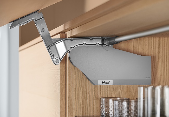 Подъемник AVENTOS HF предназначен для высоких, больших, состоящих из двух частей фасадов. Это решение предлагает большое разнообразие планировок и дизайна, при этом всегда обеспечивая прямой доступ к внутренней части шкафа, комфорт использования и свободу передвижения пользователя кухни.
