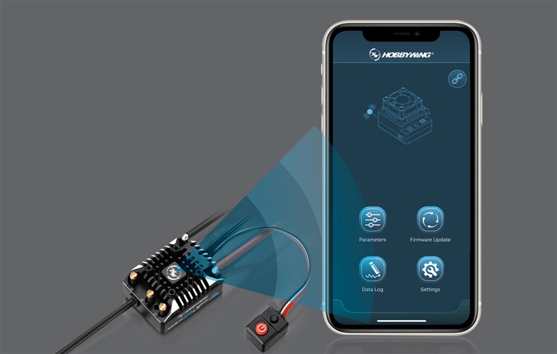 Получите доступ к дополнительным функциям – это предоставляет приложение Hobbywing, которое вы можете бесплатно скачать на свой телефон. Встроенный модуль Bluetooth позволяет быстро и легко выполнить сопряжение регулятора со смартфоном – вам не нужны дополнительные кабели или устройства. Просматривайте сохраненные данные, настройки программы и отслеживайте параметры устройства в режиме реального времени, такие как напряжение, ток, частота вращения или температура.