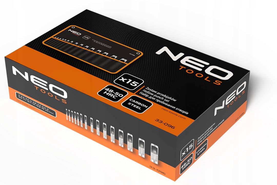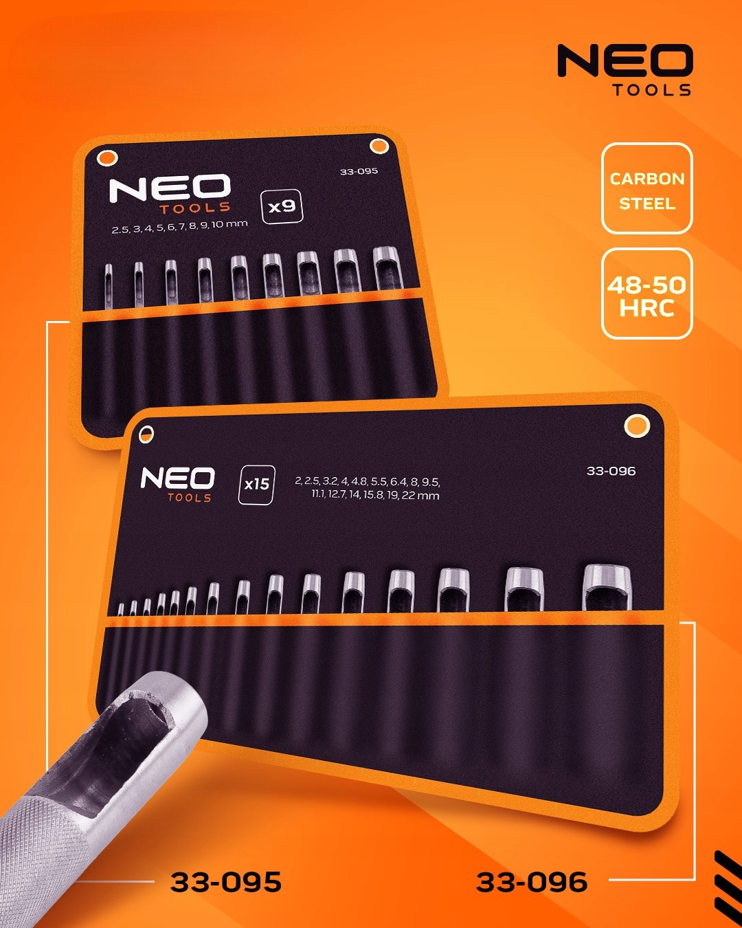 Набор из 15 пробойников для вырезания отверстий диаметром 2-22мм, кейс NEO Tools.