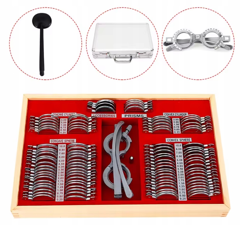 ✅ Полный набор из 104 линз - содержит сферические, цилиндрические, призматические и специальные линзы