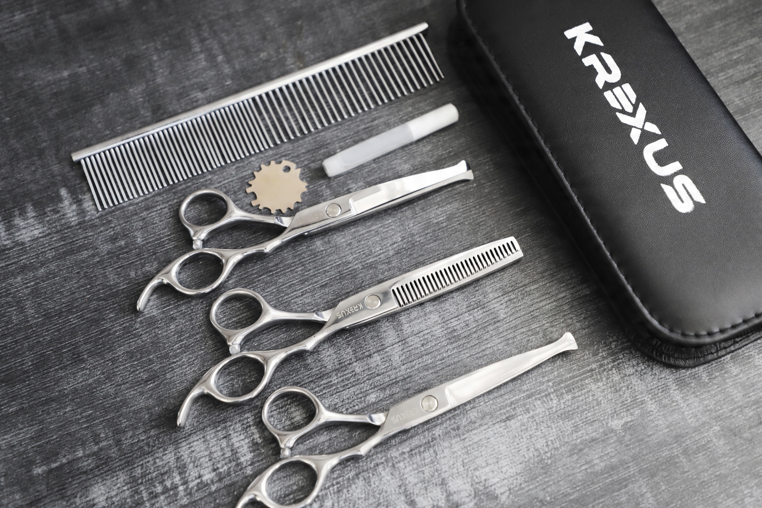 Позаботьтесь о внешнем виде и здоровье вашего питомца с помощью профессионального набора ножниц для стрижки KREXUS. Ваш питомец достоин самого лучшего!